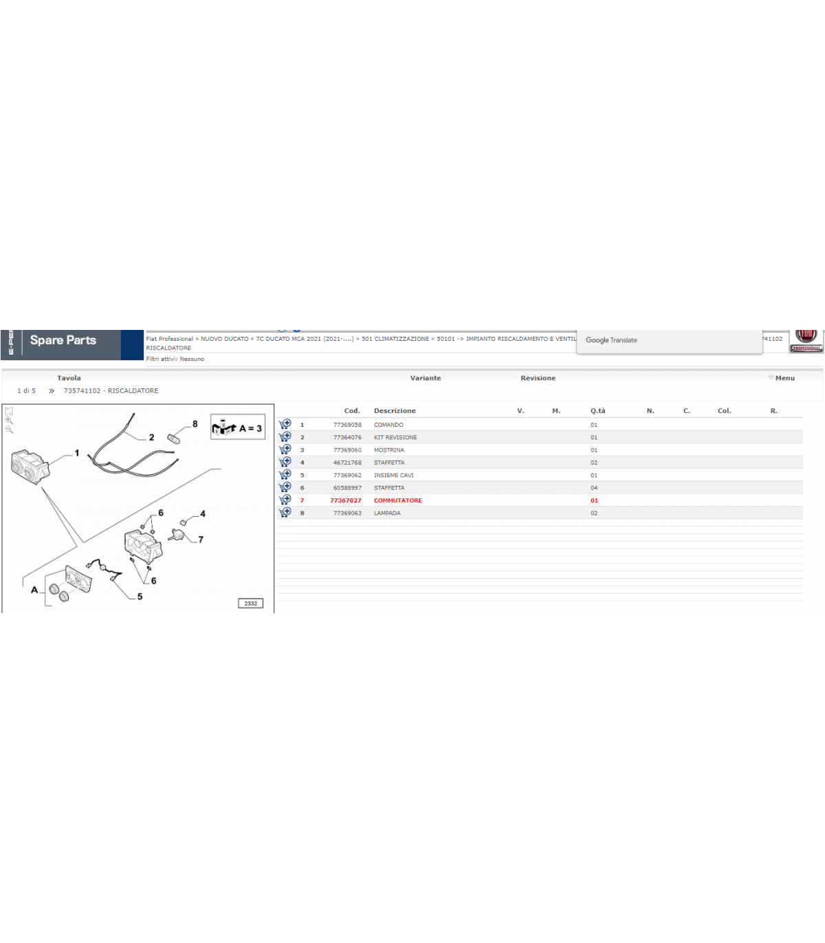 77367027 COMMUTATORE STUFA DUCATO 2006-2021
