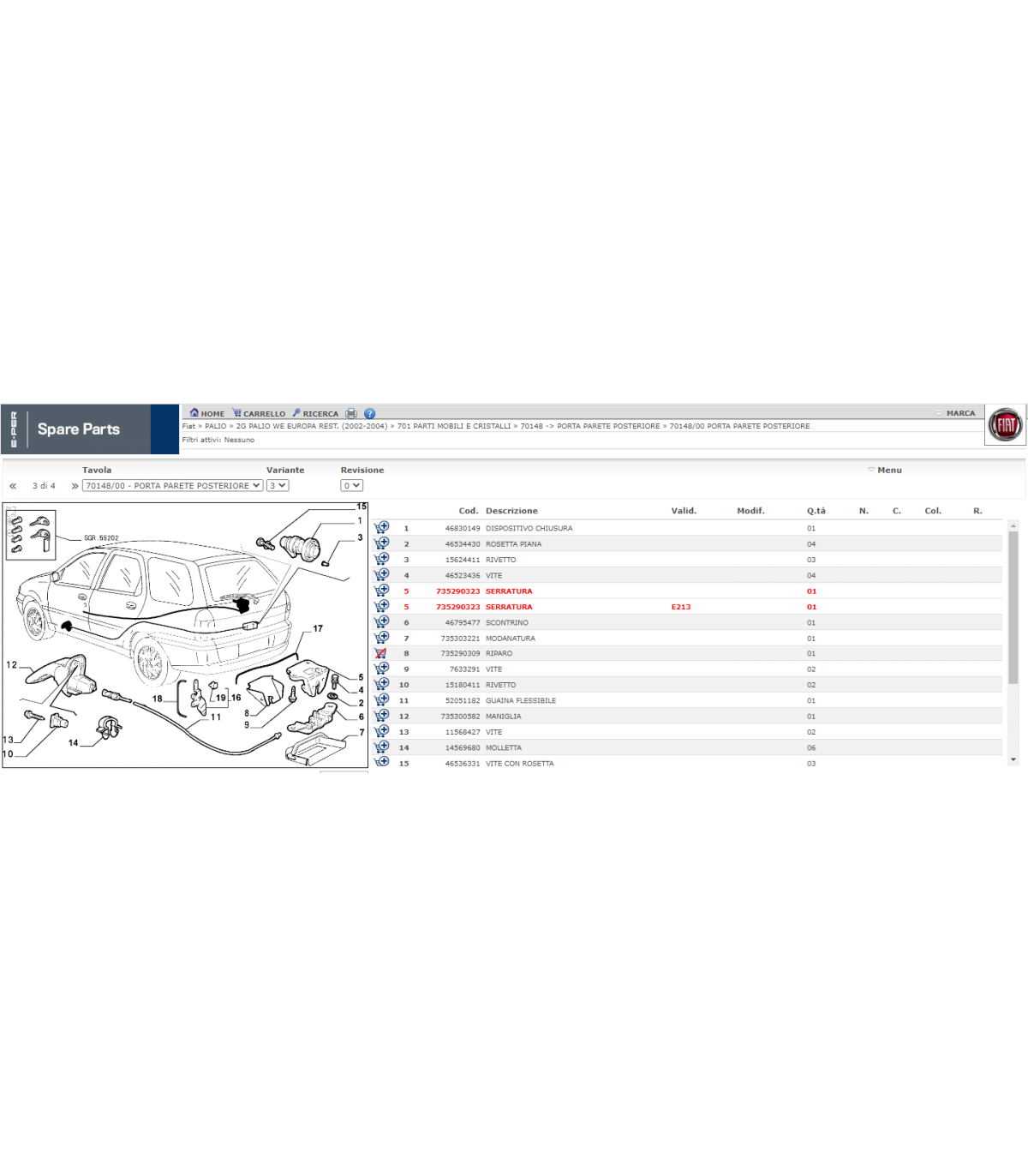 NOTTOLINO BLOCCHETTO SERRATURA PORTELLONE FIAT PALIO SW 97-02 FIAT 46451831 12,10 € Aggiungi al carrello